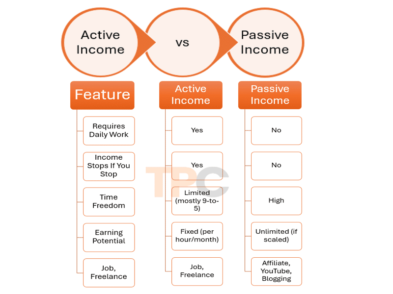 Here is the Quick Comparison of active income vs. passive income.